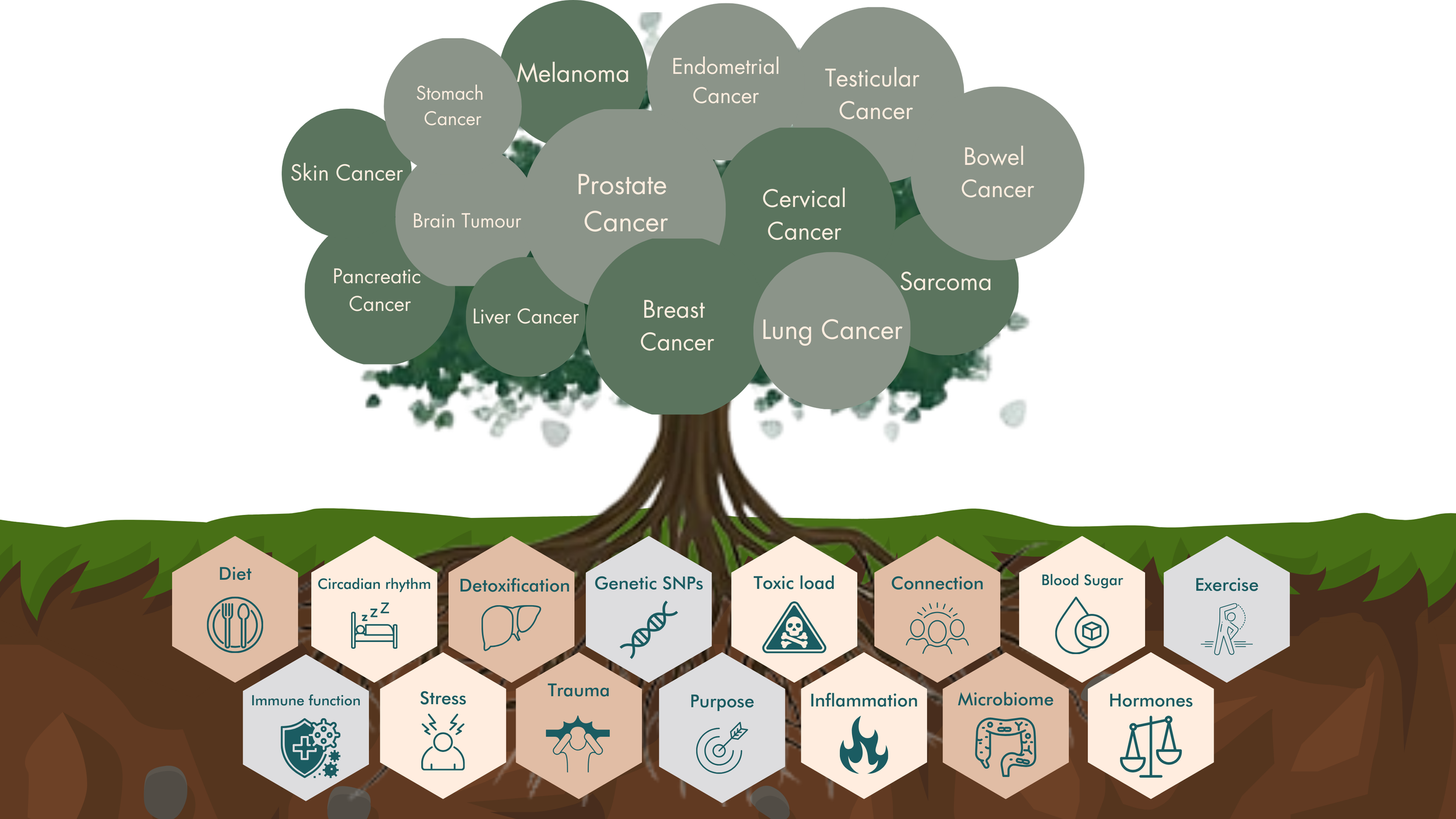 I focus on the terrain that influences how you feel and how well your body copes with treatment and recovery, and investigate the factors that could’ve led you to develop cancer in the first instance. I provide support across: